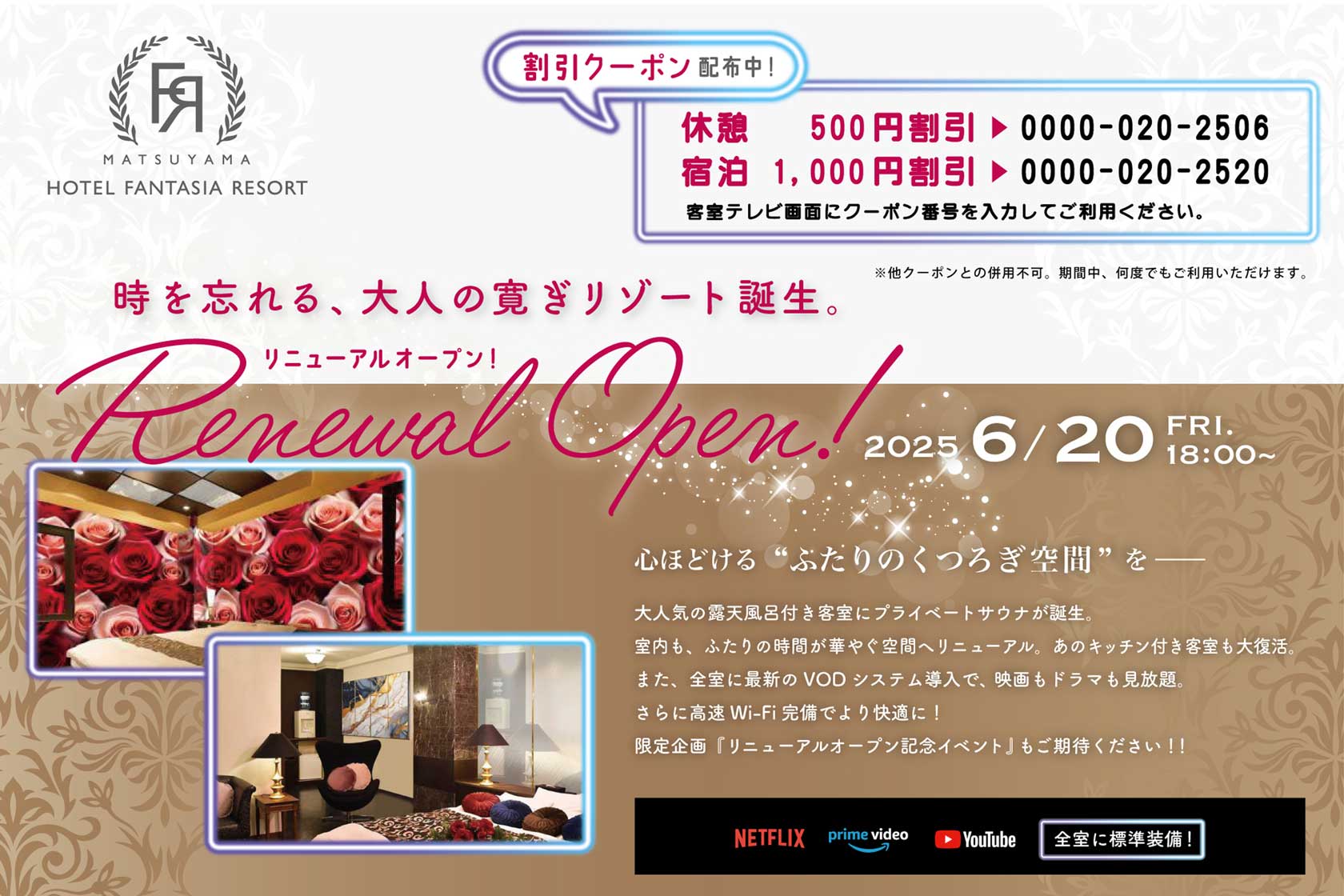 客室テレビ画面にクーポン番号を入力してご利用ください。